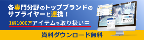 ビズネットの「購買管理プラットフォーム」では、30社を超えるサプライヤーと連携し、1億1,000万品目以上のアイテムを取り扱っています。そのため、自社が資材を調達する際にサプライヤーを選定する時間の短縮ができる利点があります。